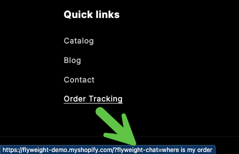Mit Deep Links kannst Du den Flyweight AI Chatbot in Eurem Shopify‑Shop direkt ansteuern und sofort bestimmte Aktionen auslösen. Das ist ideal für Support‑Antworten, Produktberatung oder individuelle Nutzerflows.