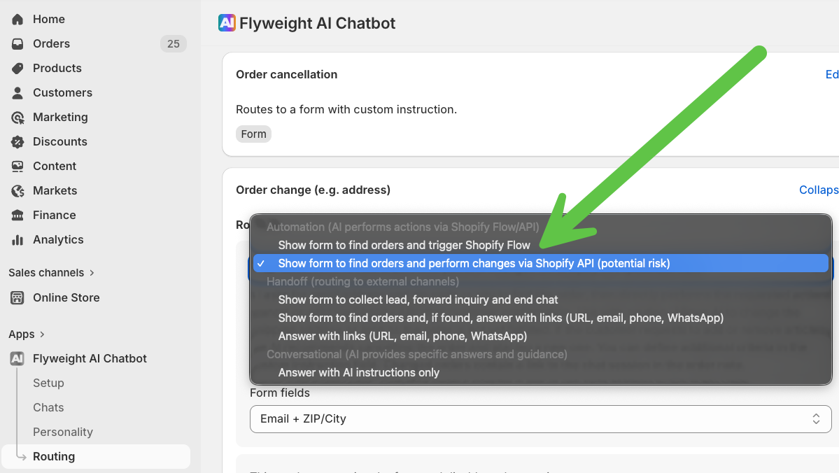Discover how your Shopify AI chatbot can automatically update shipping addresses and cancel orders using Shopify API or Flow.