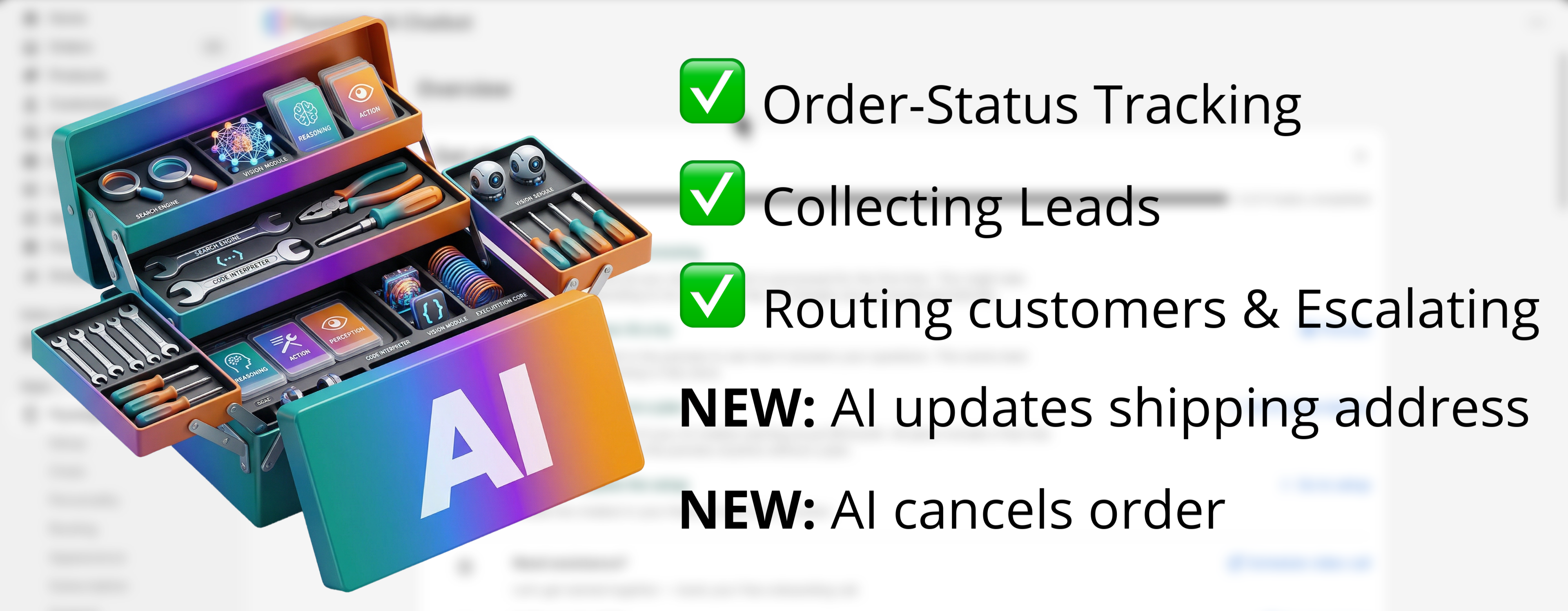 Your Shopify chatbot already comes with powerful built-in tools: